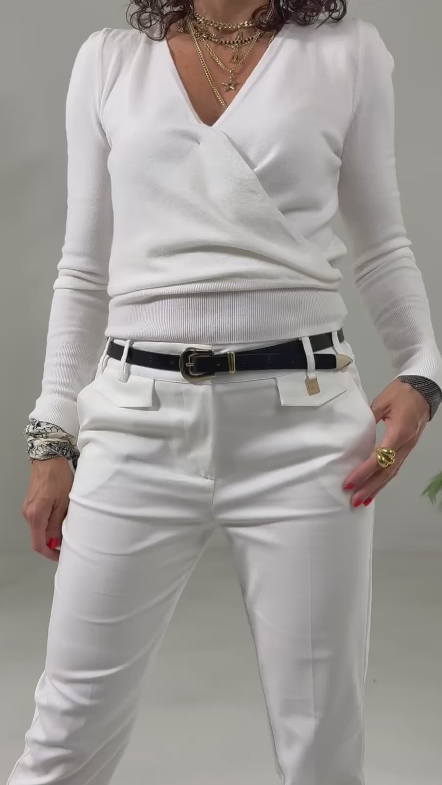 COLLETTO IN COTONE CON PERLE APPLICATE