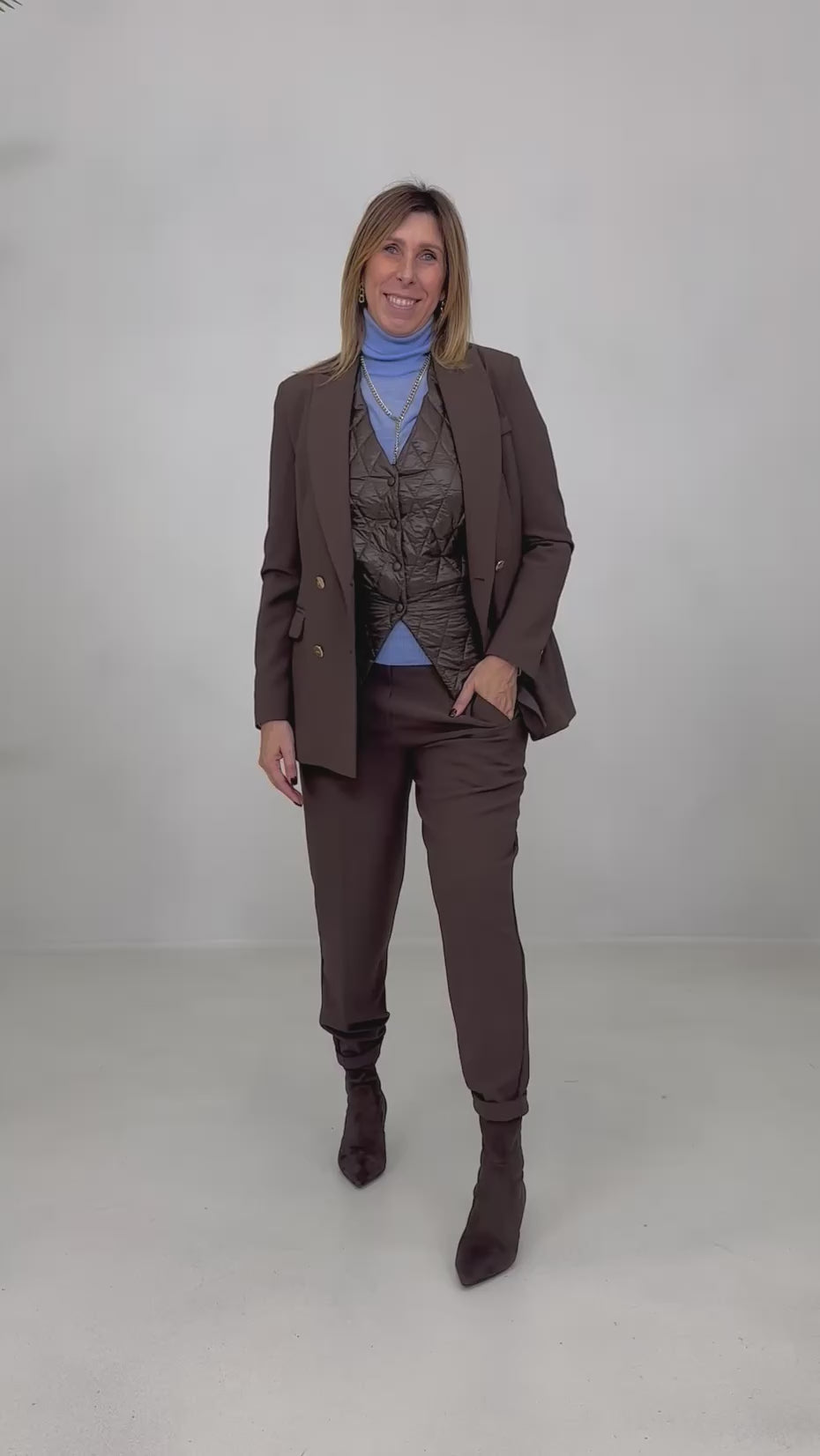Lo chiamiamo Easy pant per la comodità e praticità, infatti non presenta zip o bottoni, ma elastico all'interno della fascetta.