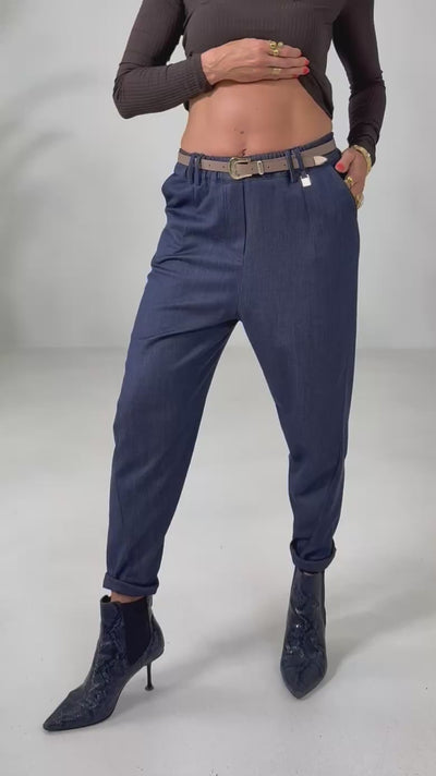 BAGGY CON CAVALLO BASSO IN MAGLIA TECNICA EFFETTO JEANS