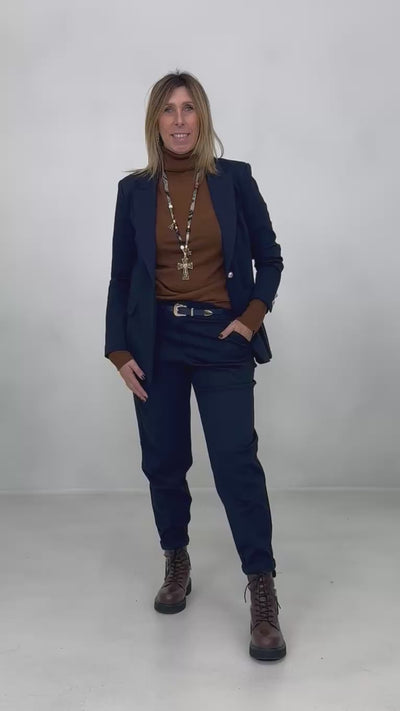 Lo chiamiamo Easy pant per la comodità e praticità, infatti non presenta zip o bottoni, ma elastico all'interno della fascetta.