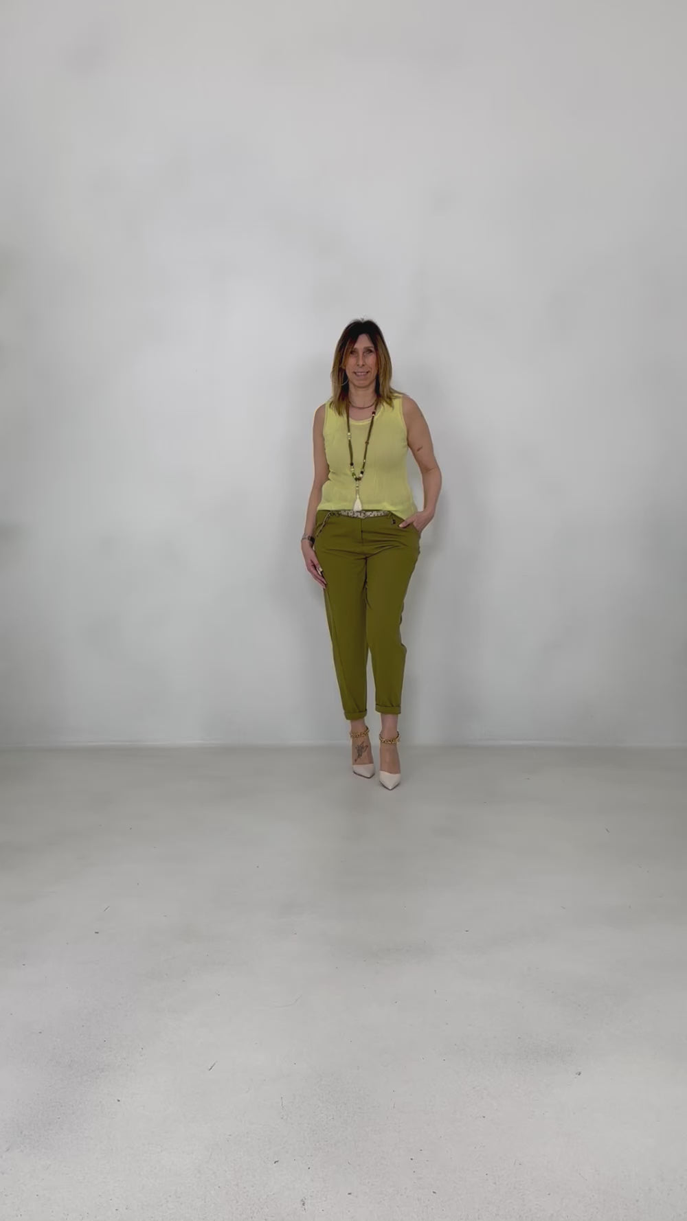 Un easy pant dall’anima rock, ideale per la primavera: disinvolto, sensuale e raffinato, perfetto dal giorno alla sera.