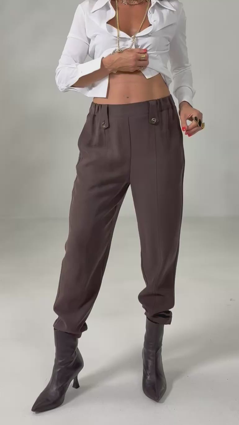 Lo chiamiamo Easy pant per la comodità e praticità, infatti non presenta zip o bottoni, ma elastico all'interno della fascetta.