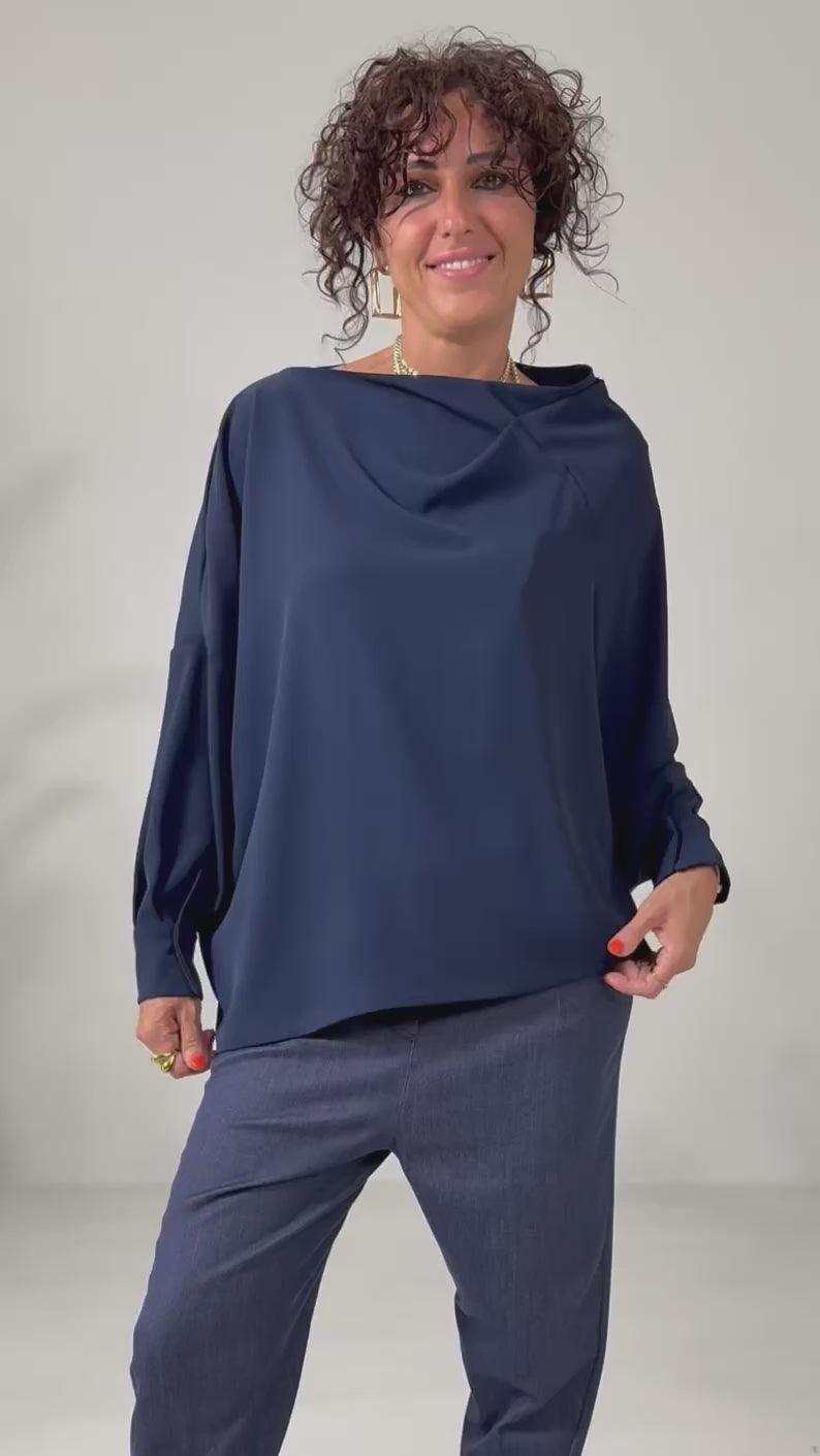 Camicia asimmetrica dalla linea quadrata in cady fluido.