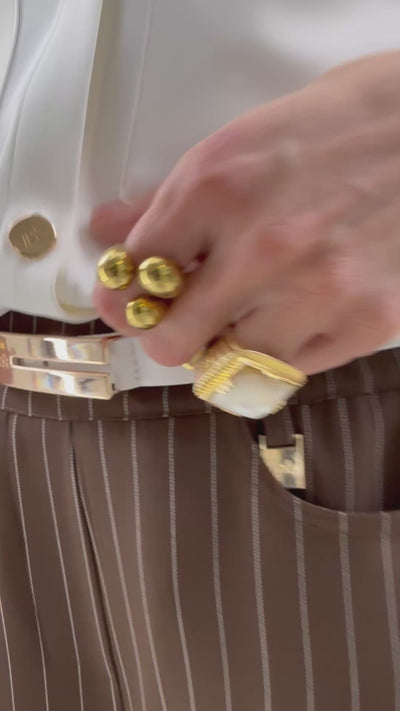 Camicia in cady fluido unito, dalla mano morbida e leggermente fresca, pensata per avvolgere il corpo con una femminilità decisa. Il colletto alla coreana e la chiusura con bottoni regimental donano un’attitudine rigorosa ma sensuale, mentre le tasche applicate con alamaro aggiungono un tocco militare, reinterpretato in chiave femminile.