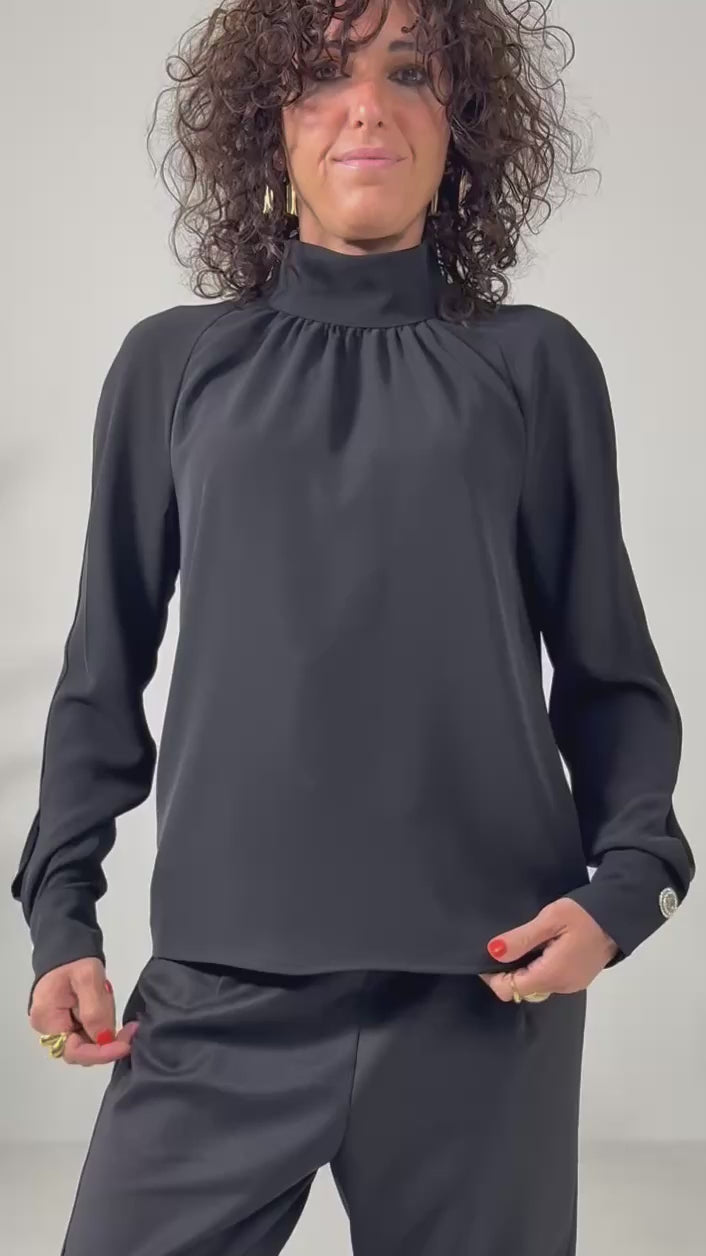 CAMICIA IN CADY FLUIDO COLLO ALTO CON ARRICCIO