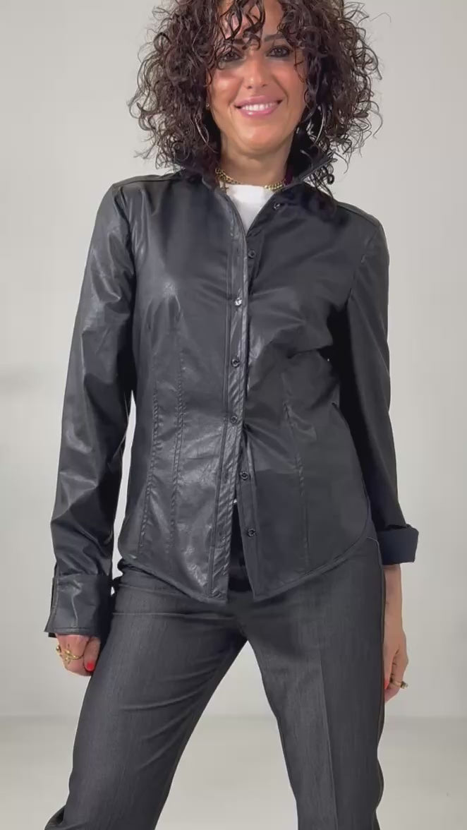 Camicia sfiancata in finta pelle leggera.