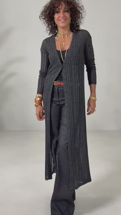 CARDIGAN LUNGO IN LANA VISCOSA PUNTO TRAFORATO