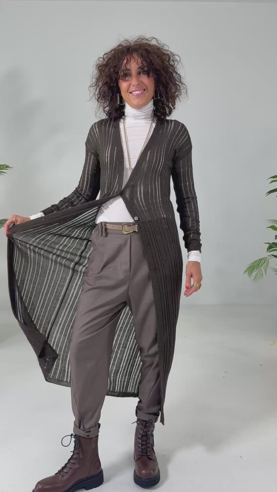 CARDIGAN LUNGO IN LANA VISCOSA PUNTO TRAFORATO