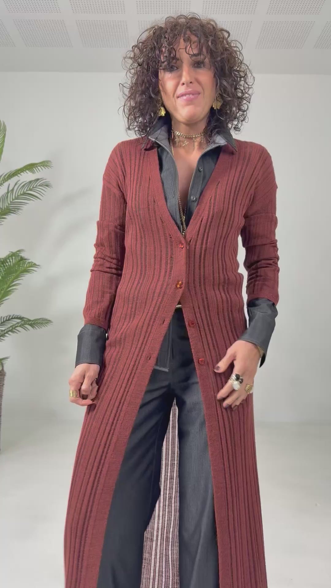 CARDIGAN LUNGO IN LANA VISCOSA PUNTO TRAFORATO