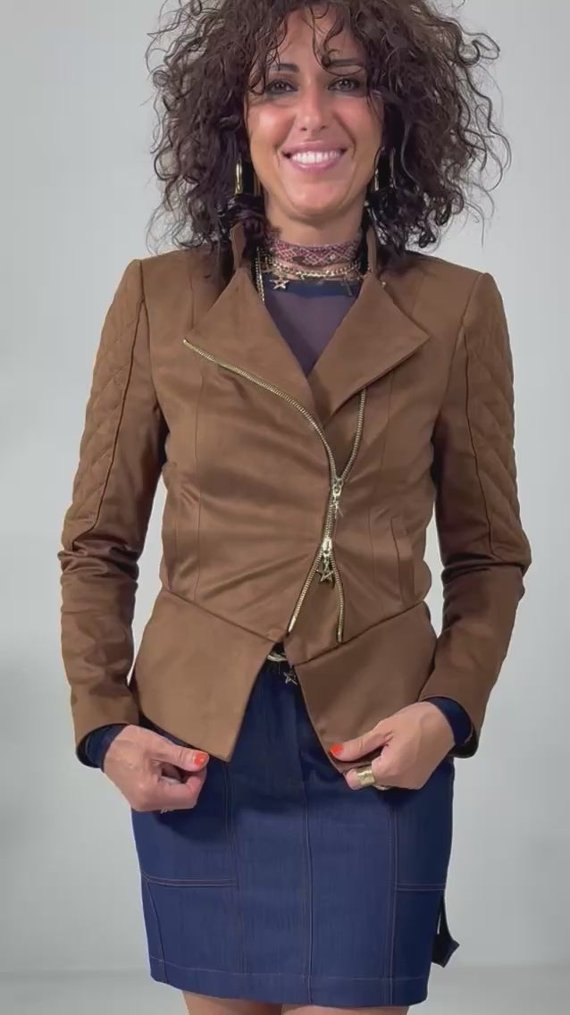 CHIODO IN DAINETTO EFFETTO CAMOSCIO CON FODERA CANGIANTE