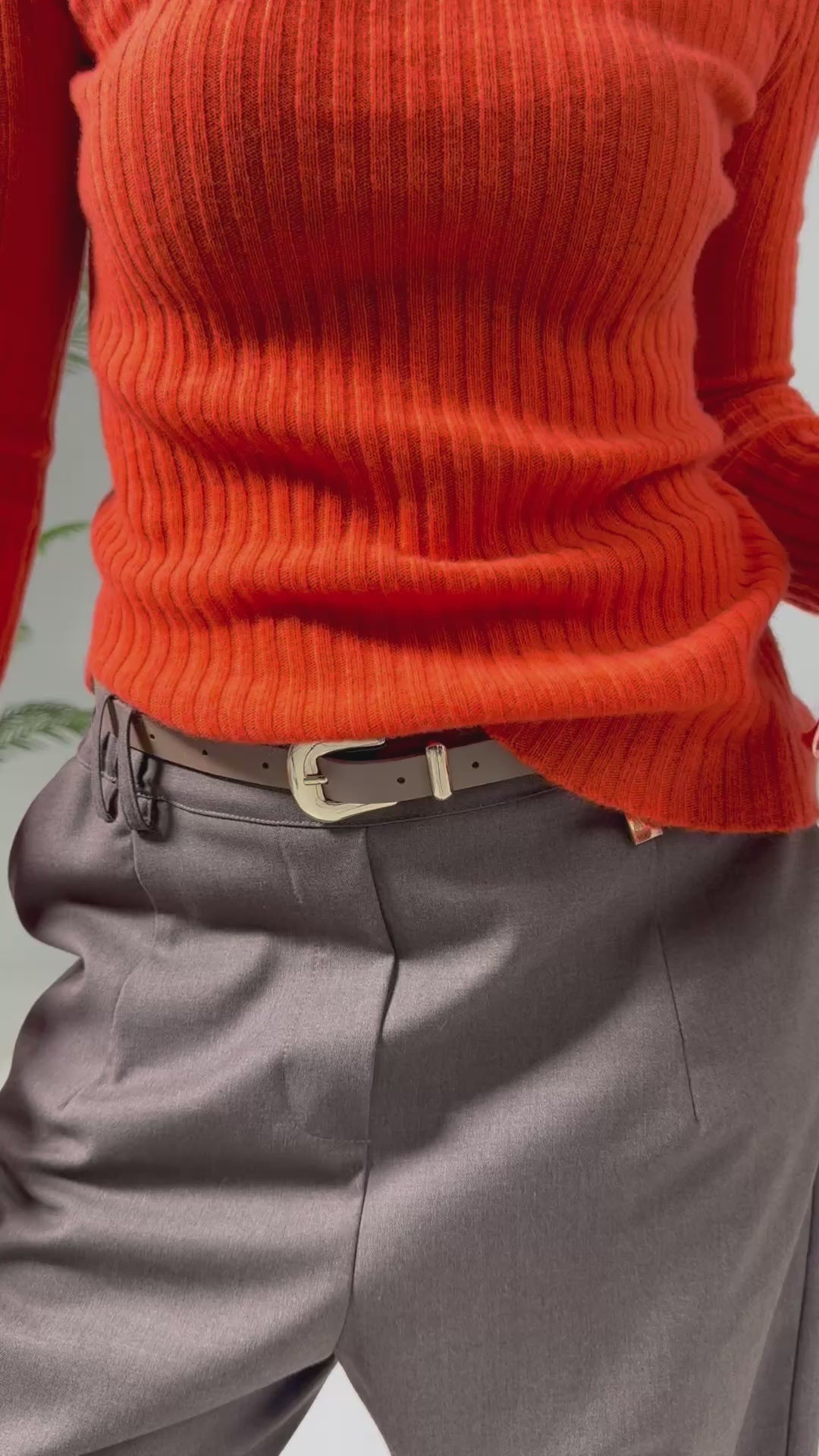 Dolcevita in lana cardata super soft, con spacco sulle maniche a coste .
