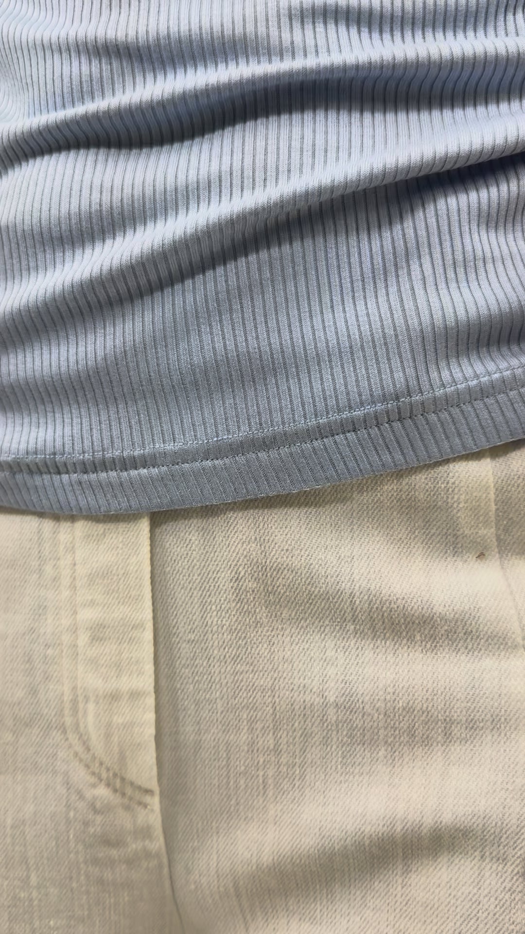 Maglia in viscosa elastica a costine, morbida sulla pelle e piacevolmente fluida al tatto.
