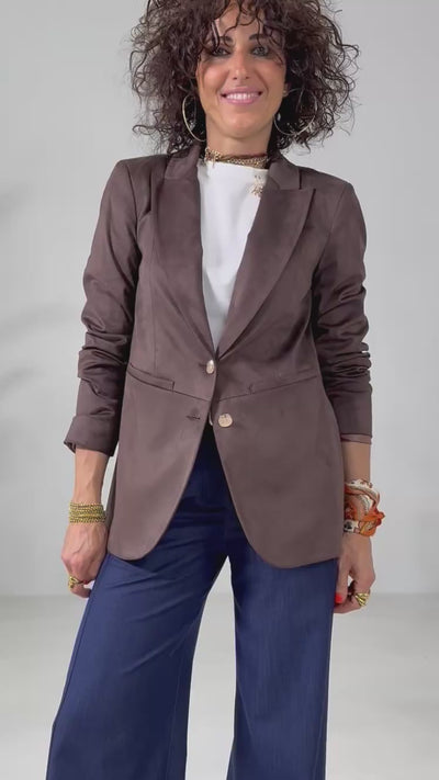 GIACCA BLAZER IN DAINETTO EFFETTO CAMOSCIO CON FODERA CANGIANTE