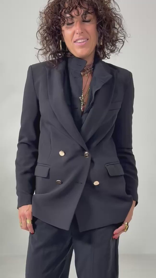 Giacca blazer doppio petto in cady tecnico.