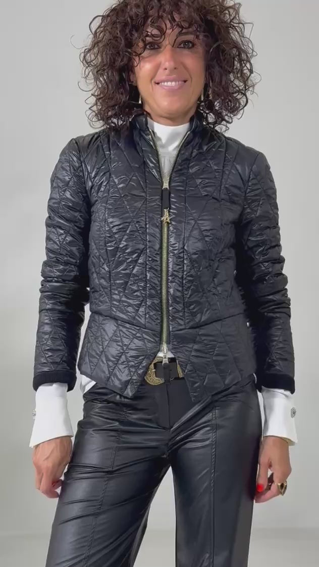 Giacchino revesibile in tessuto trapuntato con colletto alla coreana.