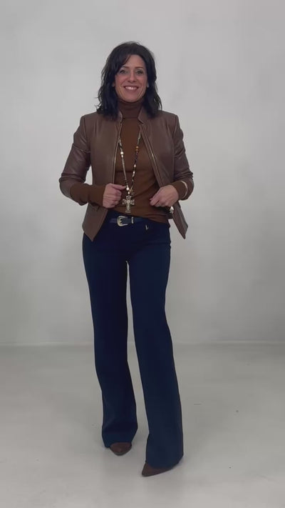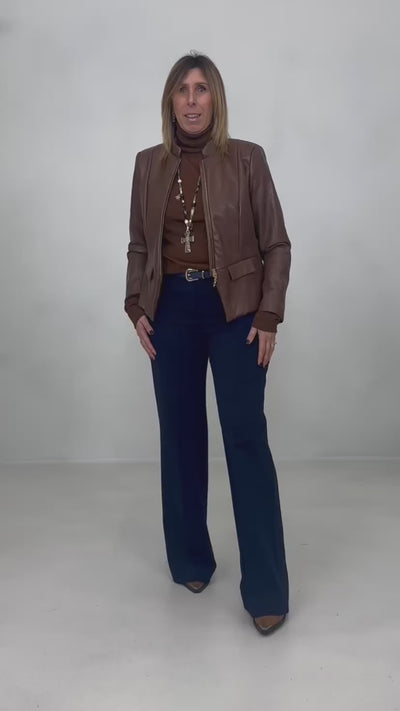 Giacchino in finta pelle elastica con colletto alla coreana.