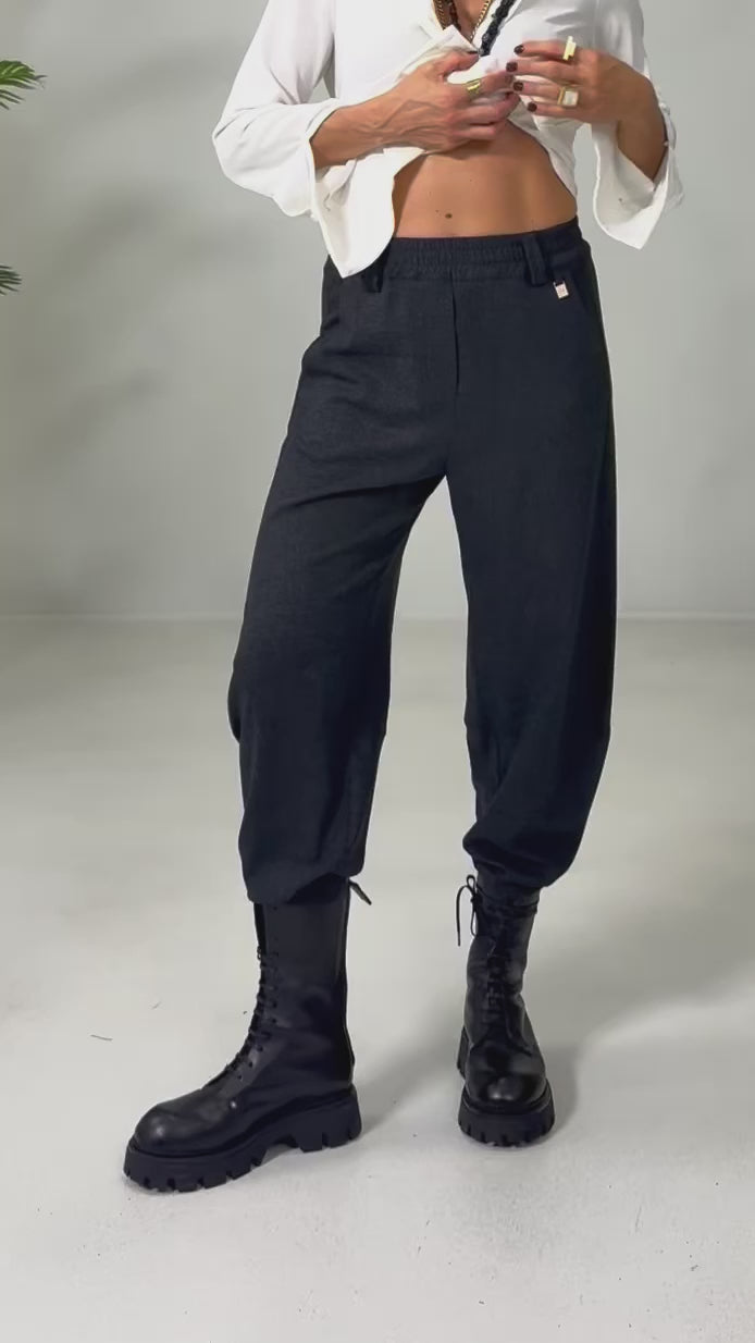 Lo chiamiamo Easy pant per la comodità e praticità, infatti non presenta zip o bottoni, ma elastico all'interno della fascetta.
