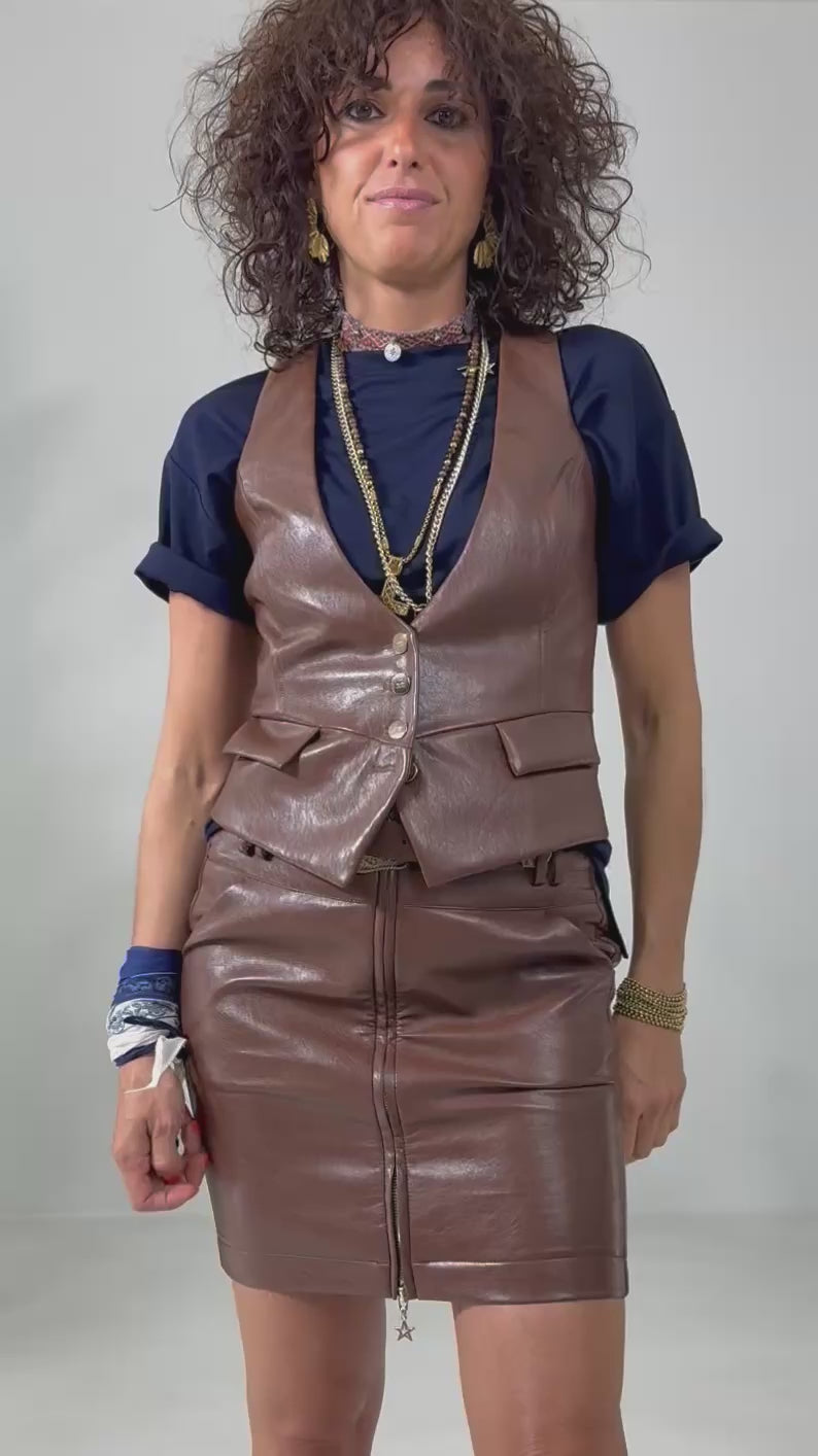 Gilet in finta pelle "mossa" elastica con scollo a V.