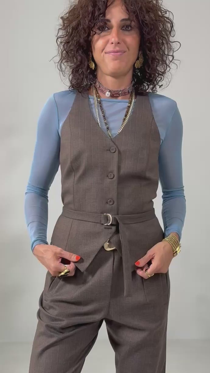 GILET IN FLANELLA GESSATA CON CINTURINO