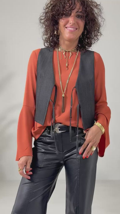 Gilet in tessuto tecnico con l'aspetto del denim foderato.