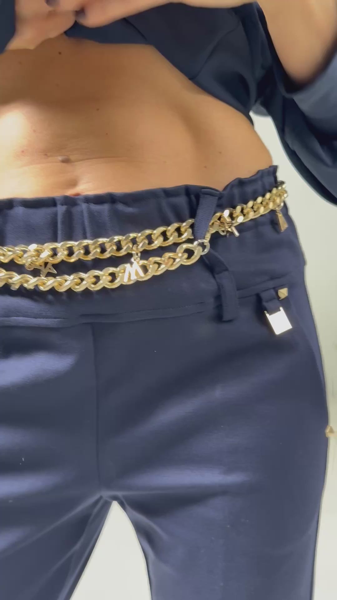 Lo chiamiamo Easy pant per la comodità e praticità, infatti non presenta zip o bottoni, ma elastico all'interno della fascetta.