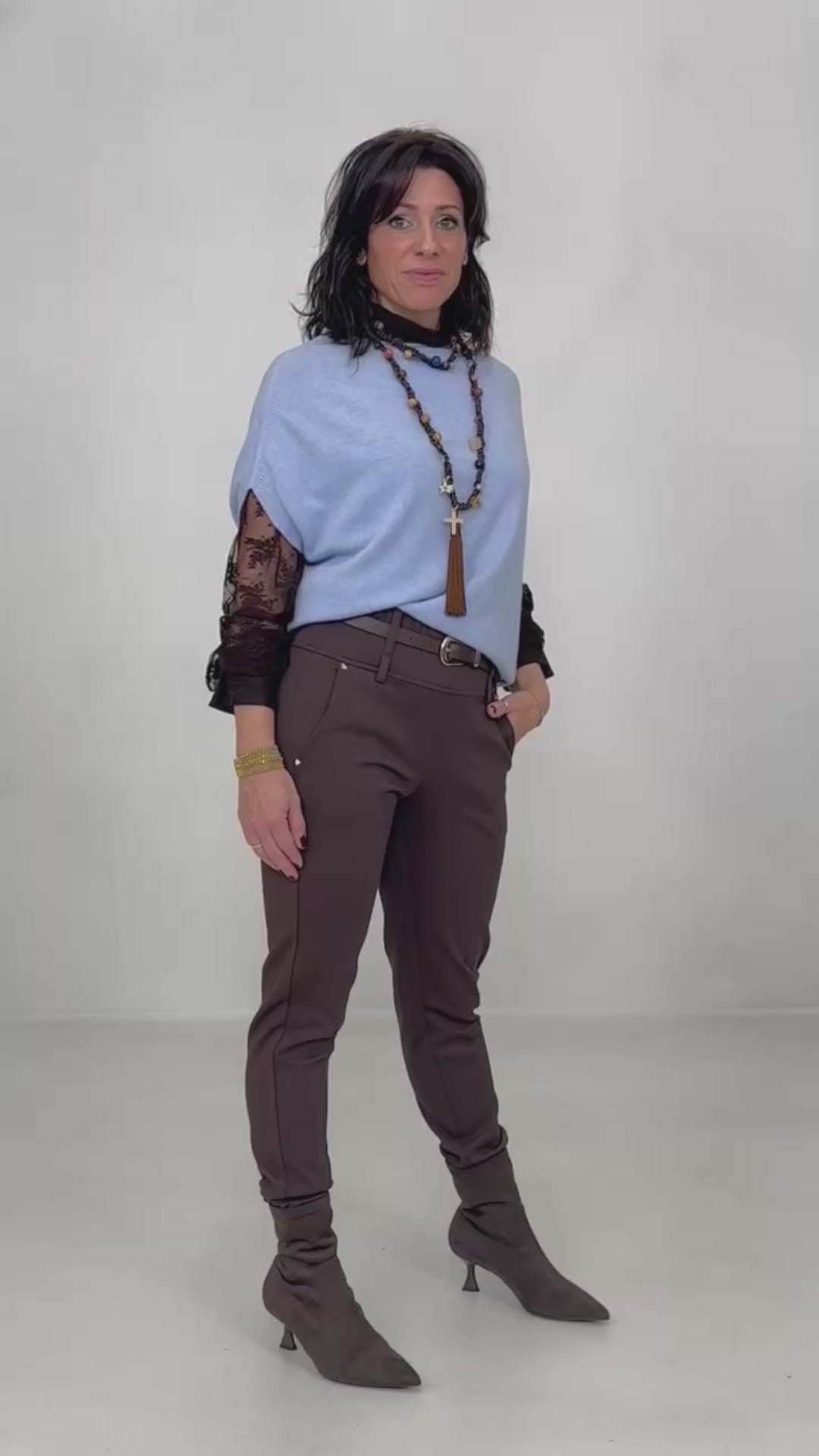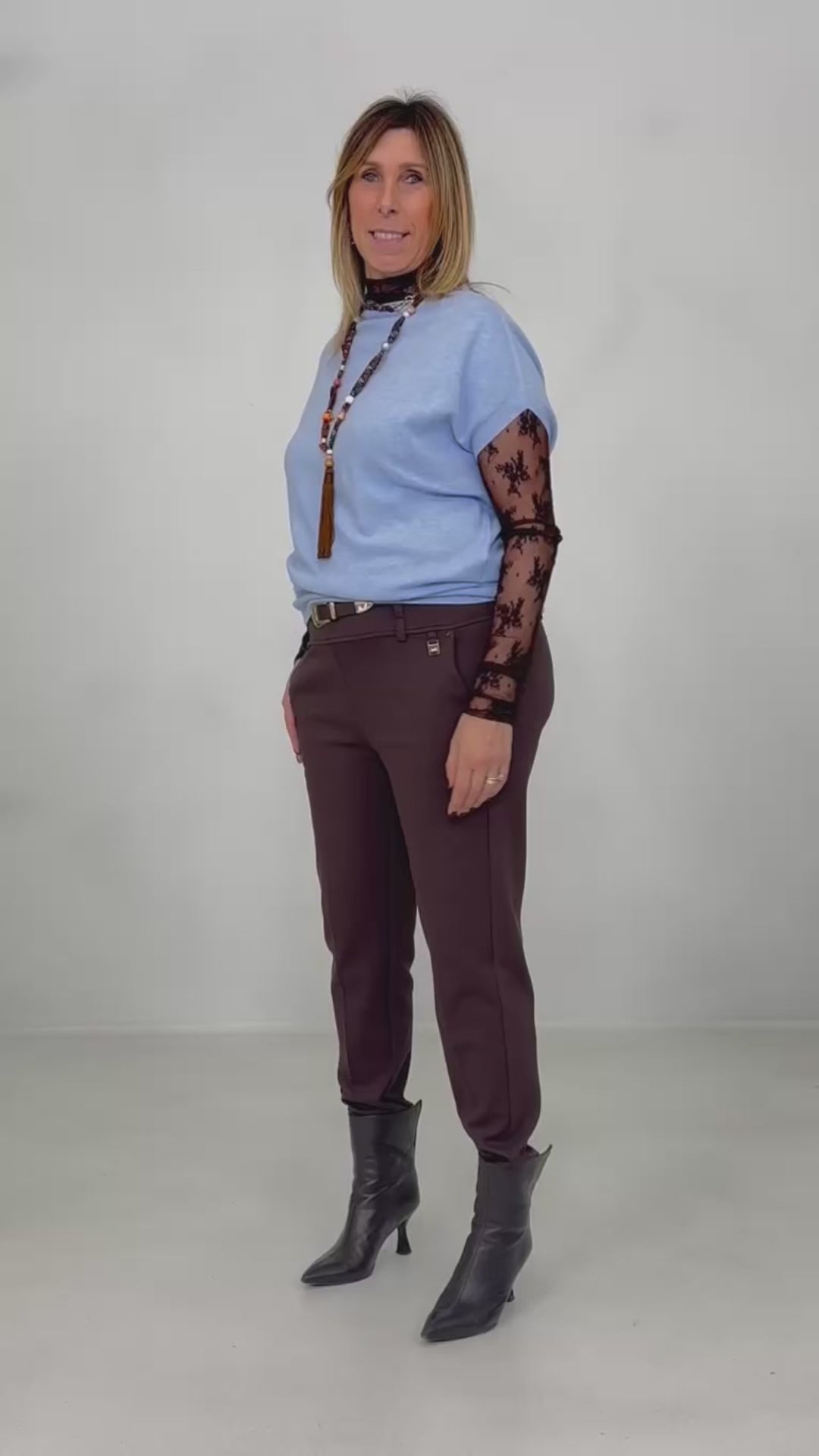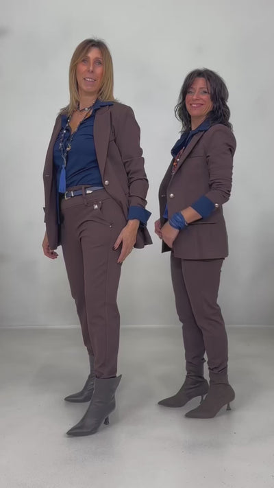 Lo chiamiamo Easy pant per la comodità e praticità, infatti non presenta zip o bottoni, ma elastico all'interno della fascetta.