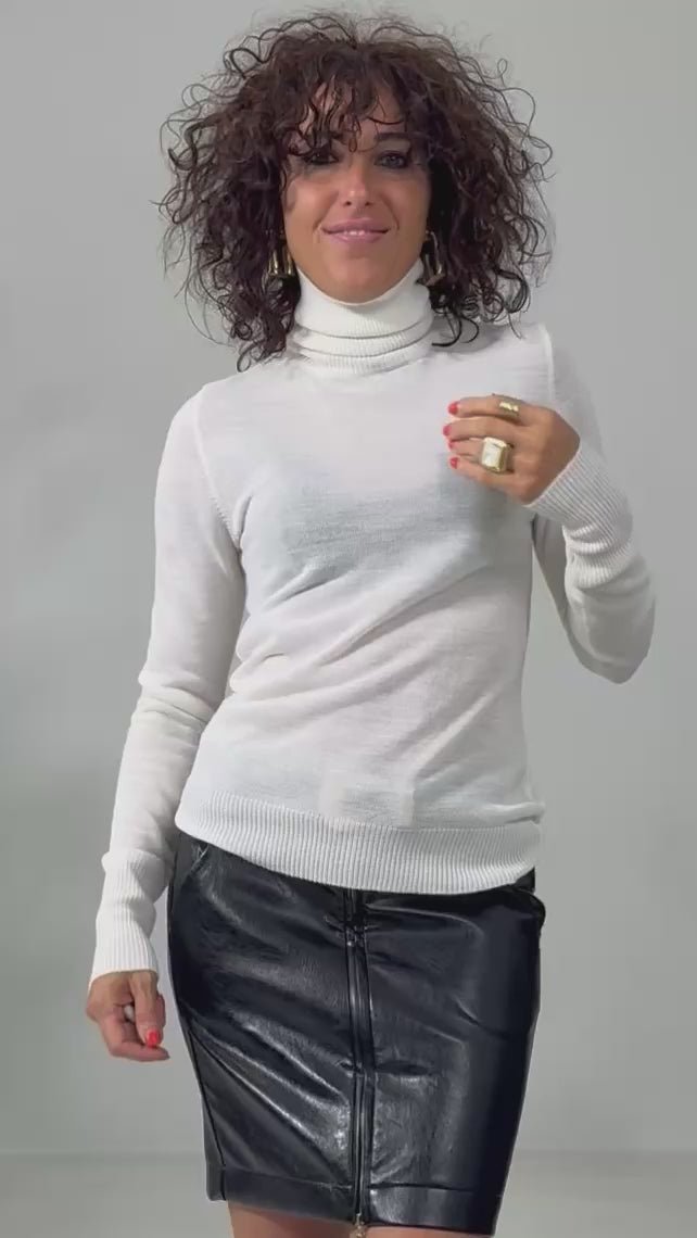 MAGLIA BASIC COLLO ALTO IN LANA VISCOSA