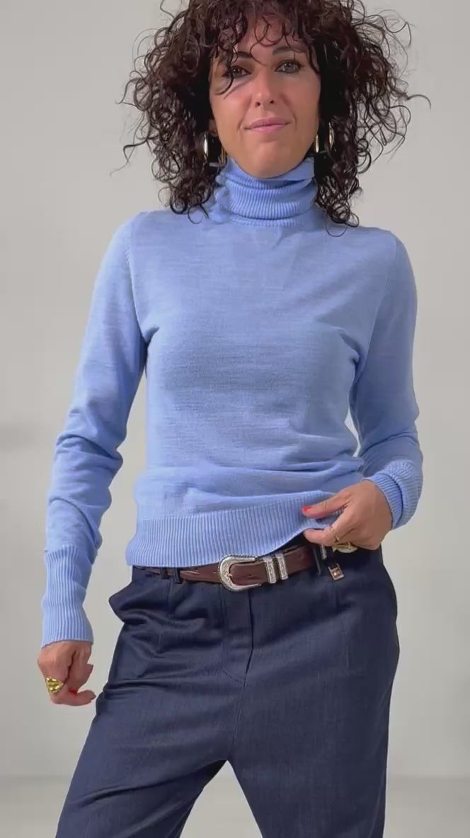 Maglia Basic collo alto con coulisse in lana viscosa.