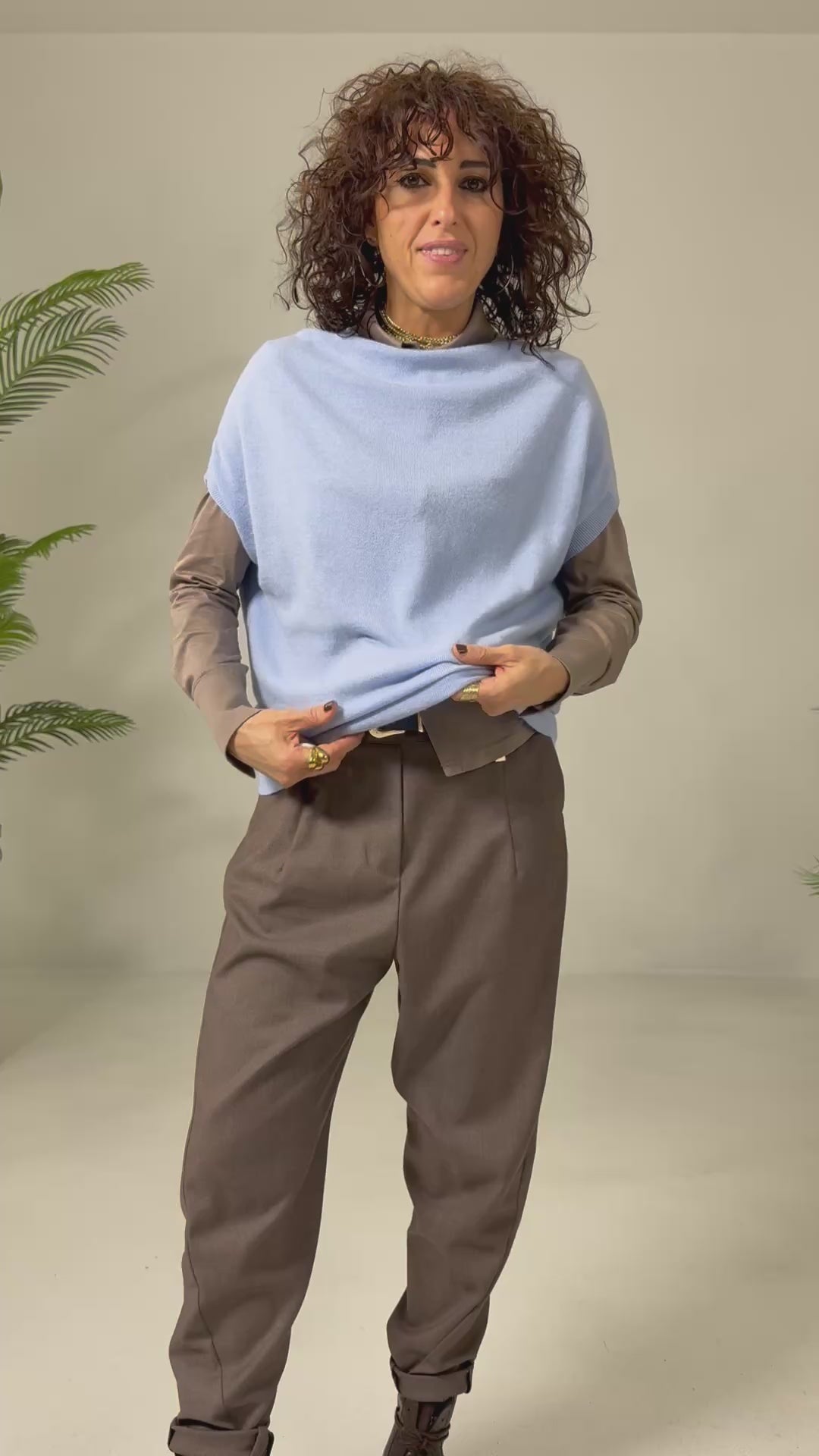 Maglia-gilet in misto cashmere, vestibilità morbida e manica scesa.