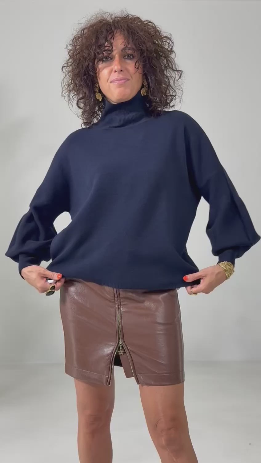 Maglia quadrata in calda viscosa con maniche a palloncino.