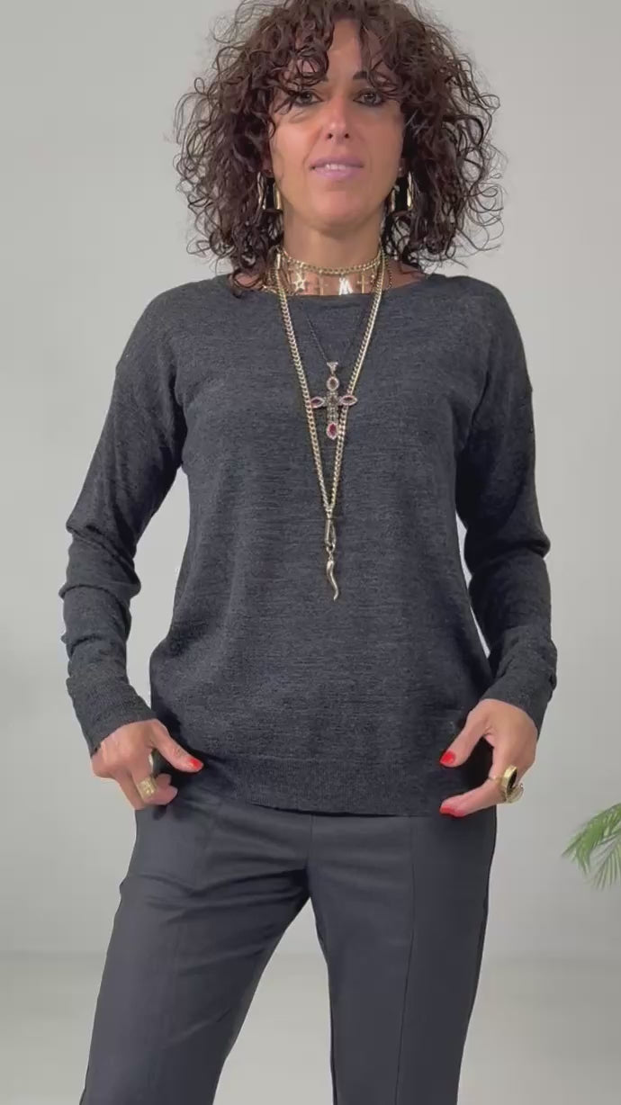 MAGLIA QUADRATA IN LANA VISCOSA CON APERTURA A GOCCIA