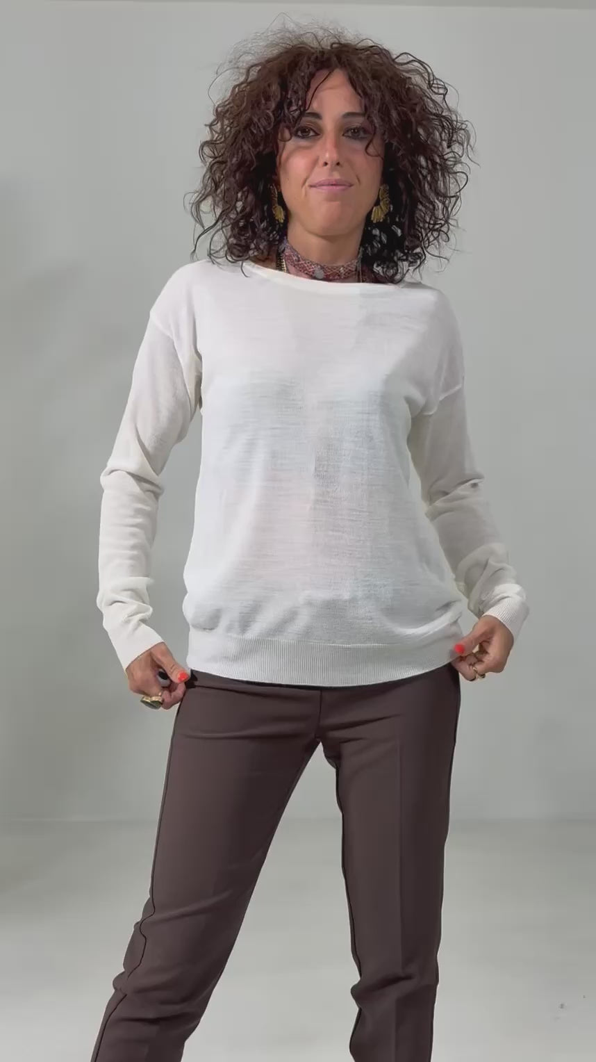 MAGLIA QUADRATA IN LANA VISCOSA CON APERTURA A GOCCIA