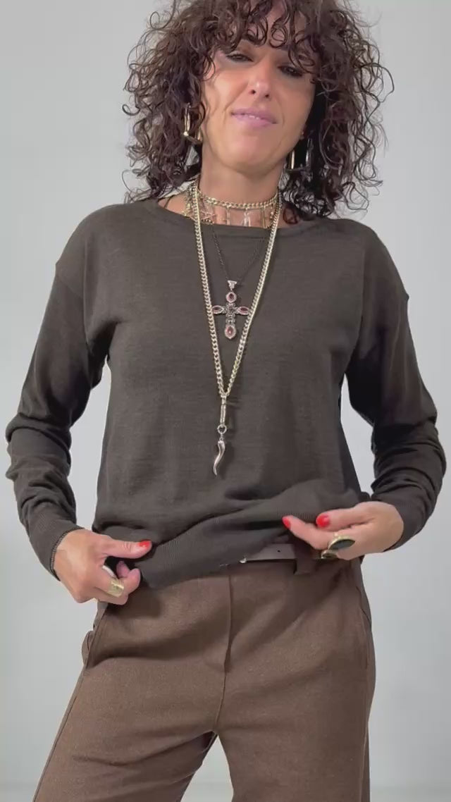 MAGLIA QUADRATA IN LANA VISCOSA CON APERTURA A GOCCIA