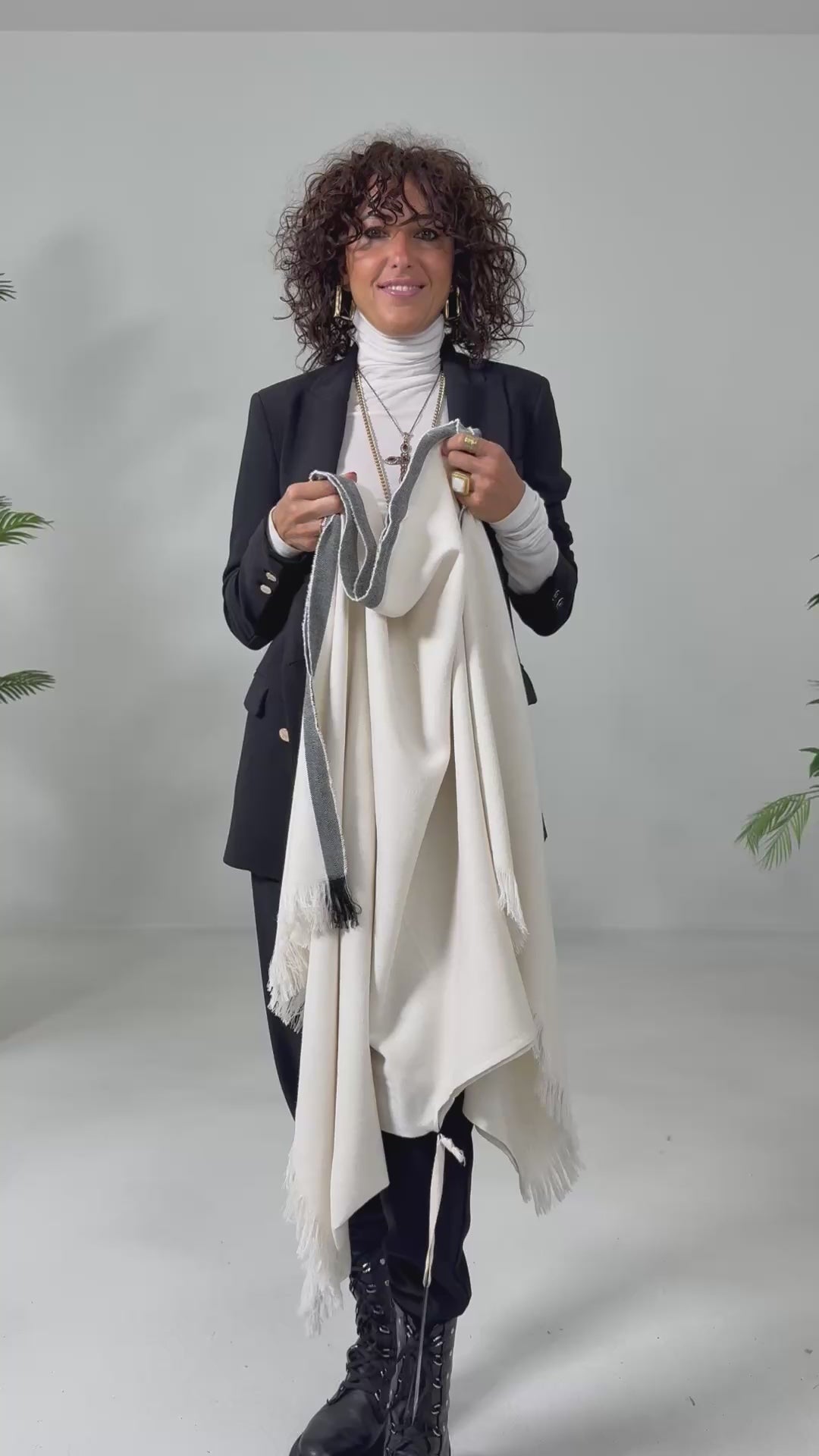 Mantella poncho in viscosa e lana vergine morbido e confortevole.