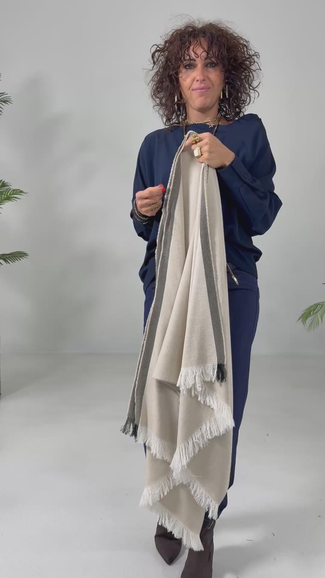 Mantella poncho in viscosa e lana vergine morbido e confortevole.