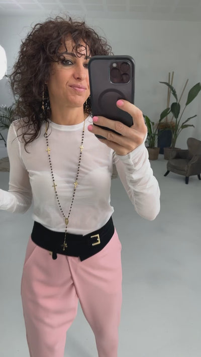 ASSEMBLATO TUTTO A MANO, pallina per pallina. Annodato a due giri. Un pregio per questo tipo di gioiello. Le perline utilizzate sono in materiale idrotermale, cristallo tinto artificialmente.