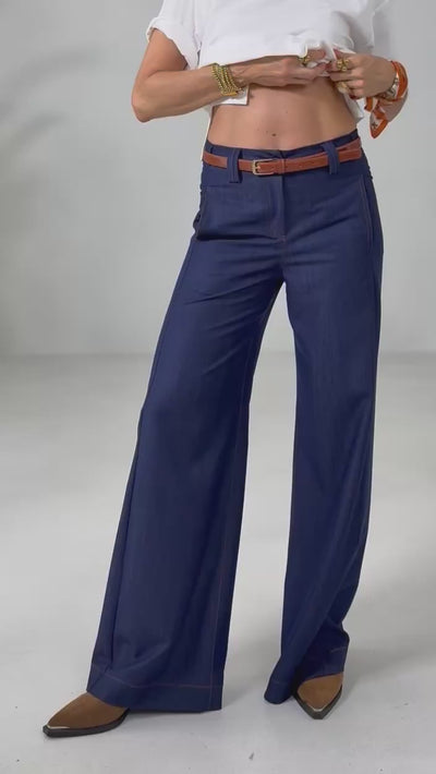 Palazzo in tessuto tecnico con l'aspetto del denim.