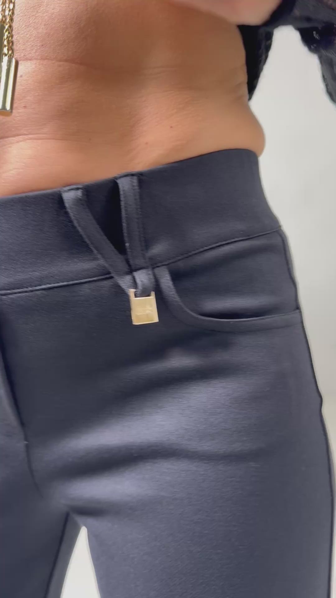 Lo chiamiamo Easy pant per la comodità e praticità, infatti non presenta zip o bottoni, ma elastico all'interno della fascetta.