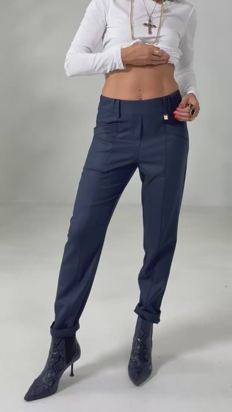 Lo chiamiamo Easy pant per la comodità e praticità, infatti non presenta zip o bottoni, ma elastico all'interno della fascetta.