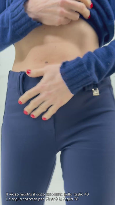 Pantalone skinny in punto milano, maglia compatta e liscia.