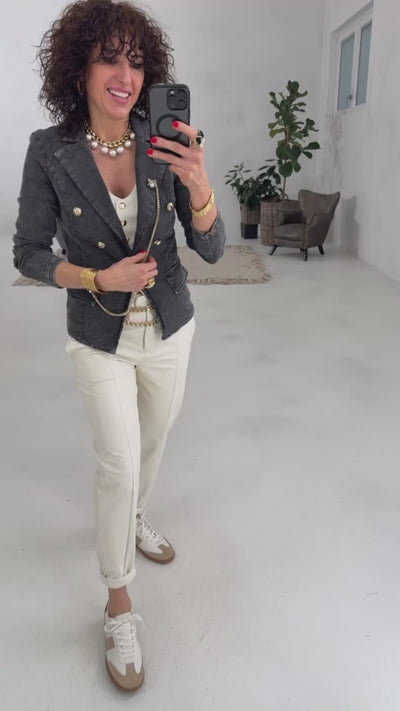 Doppia spilla con perla e catena lunga 47 cm in metallo nikel free.