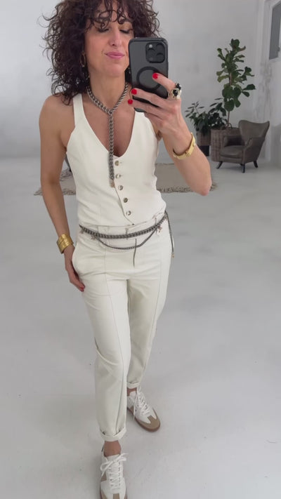 Catena grossa, con piccolo moschettone all'estremità, che si può regolare l'ampiezza del girocollo, stretto, oppure indossato più largo.