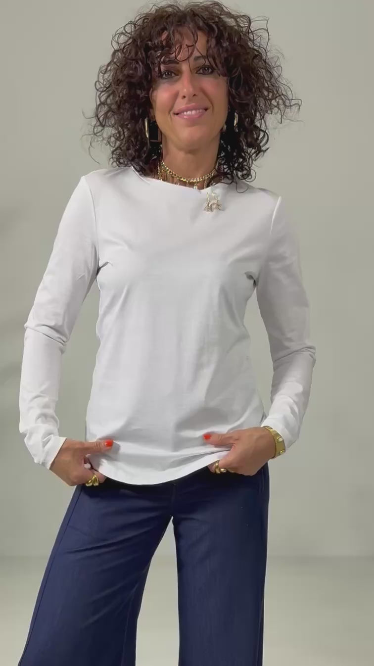 T-SHIRT BASIC MANICA LUNGA IN JERSEY DI COTONE MODAL
