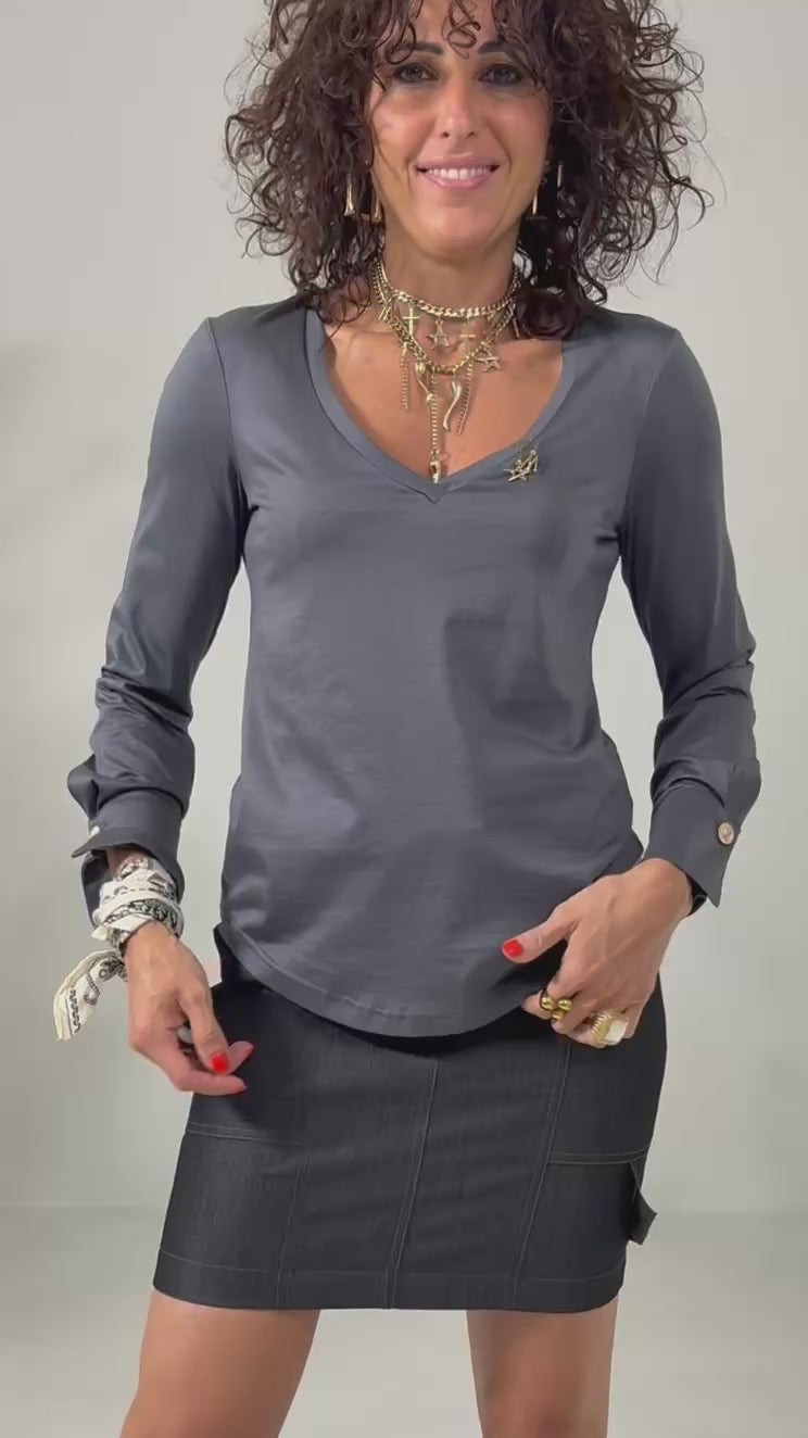 T-SHIRT BASICA CON SCOLLO A V IN JERSEY MODAL