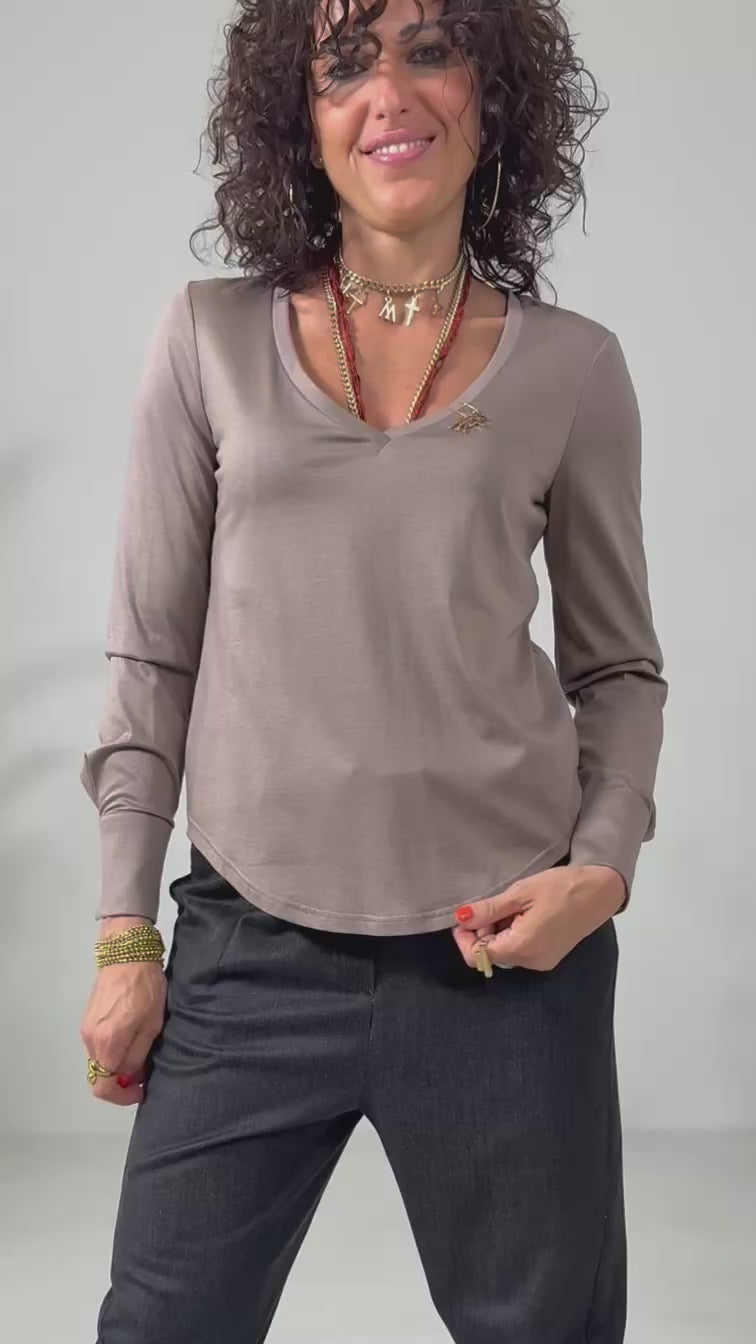 T-SHIRT BASICA CON SCOLLO A V IN JERSEY MODAL