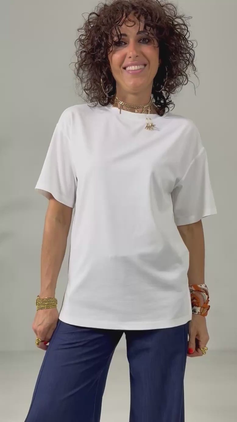 Perfetto per t-shirt dalla linea più dritta o quadrata: non si appiccica alla pelle e valorizza la figura in modo naturale, anche nei punti più delicati.Ideale per chi cerca un capo semplice ma con una vestibilità intelligente e raffinata.