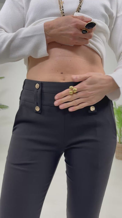 Pantalone zampetta in tessuto tecnico super stretch felpato.